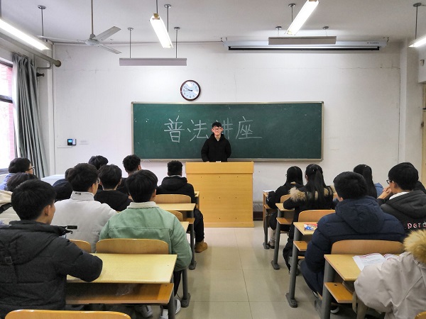 12月8日,哈哈体育18级软件技术二班在六教207教室举行以“人人学法用法,共建法制社会”为主题的普法讲...