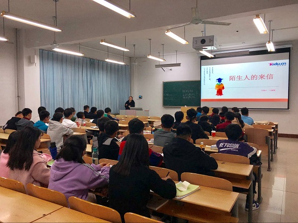 2018年10月19日,滨州公司达内企业老师于六号教学楼203教室以“陌生人的来信”为题给哈哈体育大一新生...
