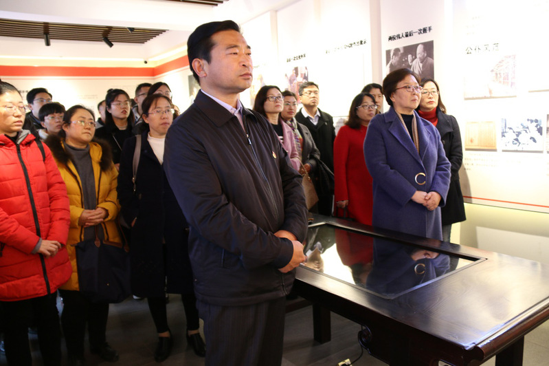 全院师生党员在讲解员的带领下,先后参观了“不忘初心、坚守信仰;对党忠诚、维护大局;热爱人民、勤政为民;自我革命、永远奋斗;勇于担当、鞠躬尽瘁;严于律己、清正廉洁”六个杰出楷模展厅、周恩来总理雕像、怀周祠,共同追忆了周总理“鞠躬尽瘁死而后已”的伟大一生。感恩殿内,全体师生党员想周总理塑像敬献了花篮、三鞠躬,表达了对总理的缅怀之情。随后来到初心园广场重温入党誓词,表达了为共产主义事业奋斗终身的信念。