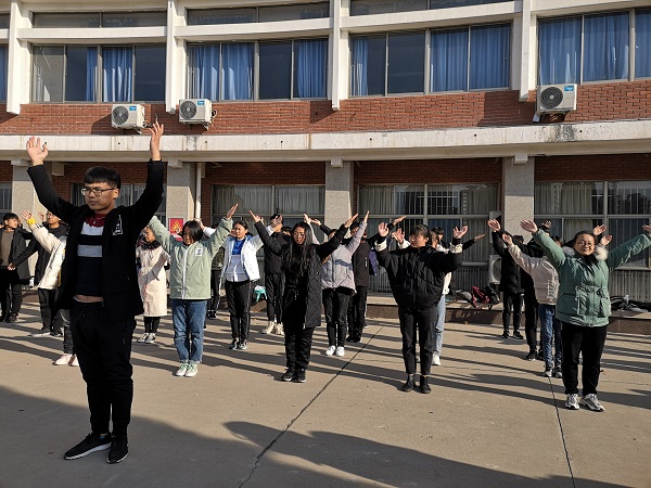 为了全面贯彻落实全民健身运动精神,丰富员工的课余生活,形成坚持锻炼的习惯和终生体育意识。11月28日上午,哈哈体育于信息楼前开展课间操活动,19级软件专业全体同学参加。