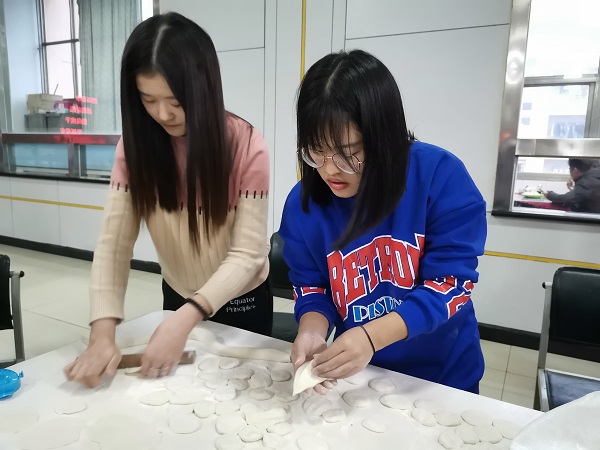 在活动举办之前,由心理辅导站主要负责人提前预约好地点并对任务进行了简单的分配,大家在听清楚自己主要的负责任务后都积极的参与其中。大家开始和面、剁拌馅等准备工作,一切就绪后,大家开始了各自的工作:搓面球、擀面皮、包饺子。有的用料十足,包出的饺子个大肚儿圆,彰显出北方的大气与豪爽;有的大小均匀,包出的饺子精致美观,呈现出南方的清秀与灵动。大家欢乐地交流,认真地操作,时而探讨心得,时而过招切磋。看着自己包出的饺子,大家的脸上都洋溢着兴奋与自豪。