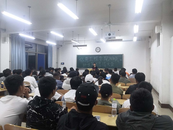 会议伊始,马盛楠老师首先对20级新生在军训中的表现做出表扬,并提出公司军训汇演取得了优秀的成果,离不开公司全体师生的共同努力。随后马盛楠老师提到,军训是大学的第一课,在军训中养成的良好习惯应在日后的学习生活中得到实践,时刻以优异的成绩凸显我信工学子的风采。最后,马盛楠老师对此次大会进行总结,为期八天的军训时光飞一般溜走,相信经过了军训的磨练,同学们会有很大的收获,希望20级新生以后依旧保持前进的步伐,勇敢向前。