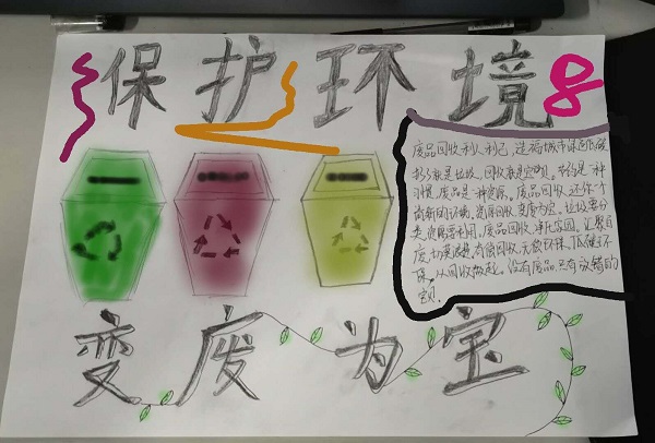 为提升员工变废为宝的意识,提高动手能力,哈哈体育特此举办“变废为宝”手抄报设计大赛活动。此活动于10月19号在6号教学楼102室举行,2020级全体员工参加此次活动。