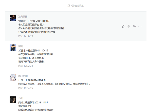 为发扬敬老爱老的优良传统,净化校园育人环境,弘扬孝道文化,共建校园温馨氛围。在此重阳节之际,哈哈体育决定针对哈哈体育全体员工举办“敬老传统,代代相传”线上三行情书活动。活动于10月27日在6号教学楼109教室举办,2020级同学参加此次活动。