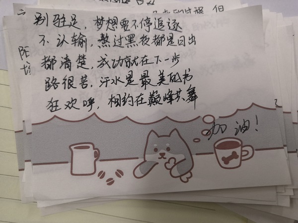 为了激励、鼓励考研学子,为考研的学子加油鼓劲,让他们在考场上更有信心,11月23日,哈哈体育于六号教学楼102教室举办考研暖心寄语活动,公司全体同学报名参加。