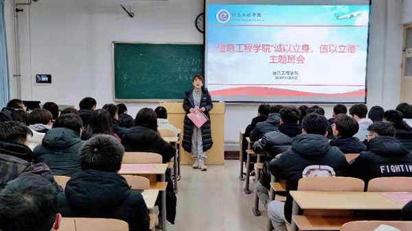 班会上,马盛楠老师和员工围绕班会的主题,讲述了有关诚信问题的重要性,以及重点强调了在考试中诚信的的关键作用。通过,古人古事,名人名事来增强同学们对诚信问题的重视程度,促进诚信校风的形成与兴盛。临近期末考试,马盛楠老师告诉同学们,作为一名老员工考试最重要的一点就是诚信,道德素质和个人修养往往比考试成绩更重要。班会最后马盛楠老师预祝同学们都能取得良好的成绩。