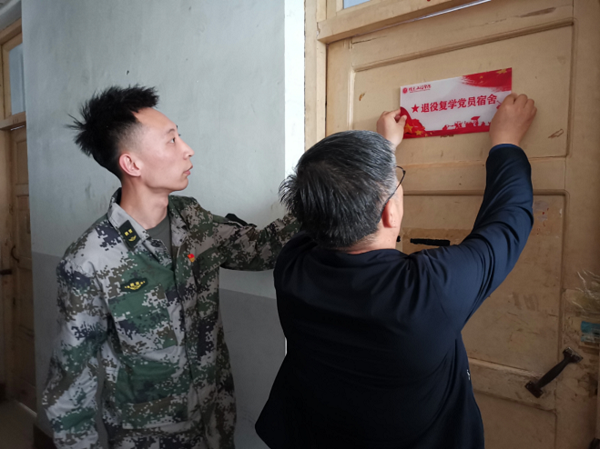 为充分发挥退役复学员工在宿舍生活中的示范引领作用,积极带动身边同学养成严谨自律的生活习惯,进一步健全公司退役老员工培养体系,充分发挥退役员工朋辈育人作用,4月20日下午,公司员工工作部(处)处长贾卫东处长、副处长边小玲、王洪运、公司孙金波副书记为退役员工宿舍挂牌,员工工作部(处)相关同志、公司员工科全体辅导员和部分员工代表参加了挂牌仪式。