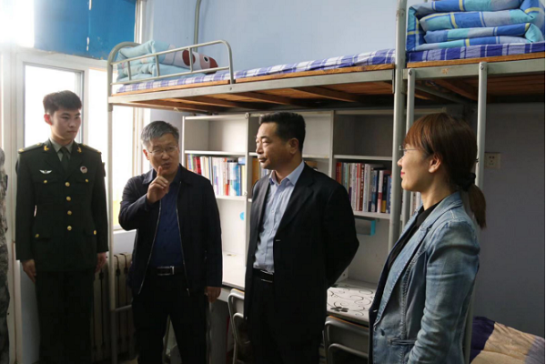 贾卫东与退役复学员工进行了亲切交谈,询问了退役员工退役复学后生活、学习等方面的情况,希望退役复学同学珍惜荣誉,发扬军人优良作风,退役不褪色,以退役复学党员、团员示范宿舍为依托,带动全院员工努力营造温馨整洁的公寓氛围,争做营造优雅宿舍环境的示范者、和谐宿舍风气建设的引领者和国防教育的推动者。