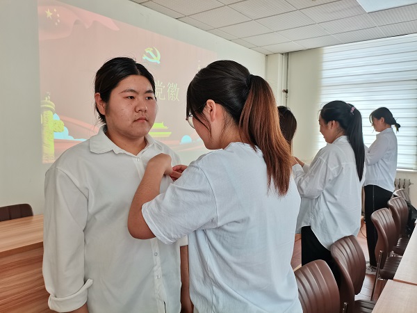 仪式开始,首先新发展党员佩戴党徽面向党旗,高举右手,在领誓人的带领下,齐声庄严宣誓:“我志愿加入中国共产党,拥护党的纲领,遵守党的章程,履行党员义务,执行党的决定……”,在场的全体党员用铿锵有力的声音,向党表达了无限忠诚和自己的决心。宣誓后,新党员代表作了表态发言,表示要牢记党的宗旨、遵守党的章程,发扬光荣传统,坚定共产主义理想信念。最后,新发展党员一起观看红色视频,并表示在今后工作中,始终不忘自己的党员身份,吃苦在前、享受在后、充分发挥党员先锋模范带头作用。