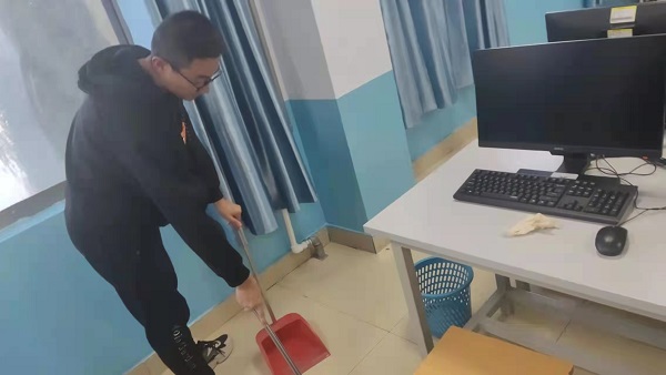 为营造良好的学习环境,展现信工学子良好的精神风貌,体会“劳动最光荣”的志愿服务精神。这次活动,不仅仅是给同学们提供一个的发展内涵的平台,更为员工营造一个“安全、和谐、节约、尚美的环境文化筑用。活动一开始,志愿者们分为三个小组,分别对二、三楼的机房进行清洁。整个过程分工明确,井井有条。三个组分别负责桌椅清洁、地板扫拖、窗口清洁三个部分。志愿者们注重桌椅清洁的细节,连键盘、鼠标、主机上的灰尘都打扫的干干净净。