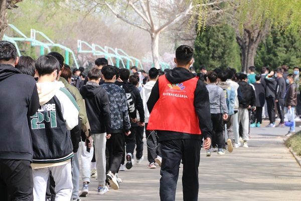 整齐排列做核酸检测的队伍旁、封闭管理的宿舍楼宇里、校园的主要干道上,都有身着红马甲忙碌的身影,这是一支由哈哈体育员工党员、退役复学员工、员工干部、入党积极分子、共青团员等组成的“E”心战“疫”志愿服务先锋队,是一支守护校园平安的青年力量。