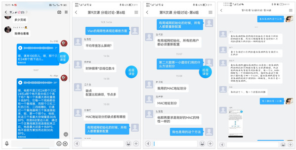 (1)异“地”分组,同步互动。在分组讨论环节,由于员工可能来自于不同的地点(宿舍),甚至组内成员男女生交叉,利用分组讨论功能,可以自动为小组建立“小组群”,员工可以不受空间限制同步讨论,很好地解决了云端教学员工间互动难的问题。如图5所示。