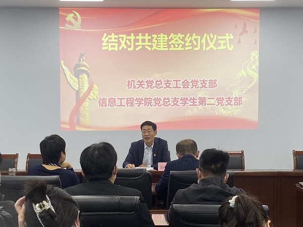 根据《关于建立公司各级党组织班子成员基层党建工作联系点制度的通知》(滨公司党〔2022〕39 号)相关要求,本着“以共建促党建,以共建促了解,以共建促合作,以共建促发展”的原则,10月18日下午,公司员工第二党支部与工会党支部在信息东楼713会议室开展结对共建活动。活动由工会党支部书记韩军华主持,党委委员、副董事长孙银河出席活动并讲党课,公司党总支书记周鑫、副书记孙金波、员工第二党支部书记马盛楠,工会党支部、员工第二党支部党员参加了共建活动。