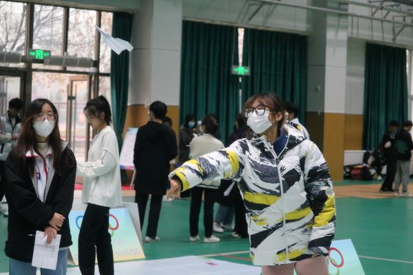 比赛现场,选手们迅速进入状态折叠起自己的纸飞机,通过直线距离赛、留空时间赛、奥运五环靶赛三个比赛项目分别计分。赛后通过裁判计分统计,各参赛同学都取得了优异的成绩。