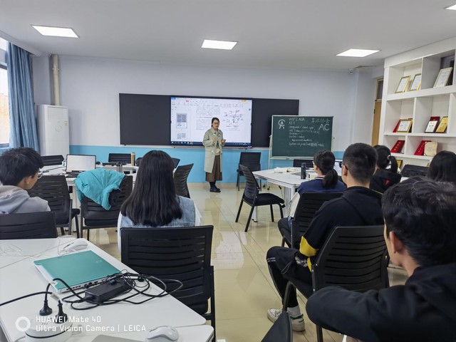 韩博士认真细致地向同学们讲解她所研究的海洋方向的课题。在韩博士讲座过程中,同学们认真聆听,热烈讨论。