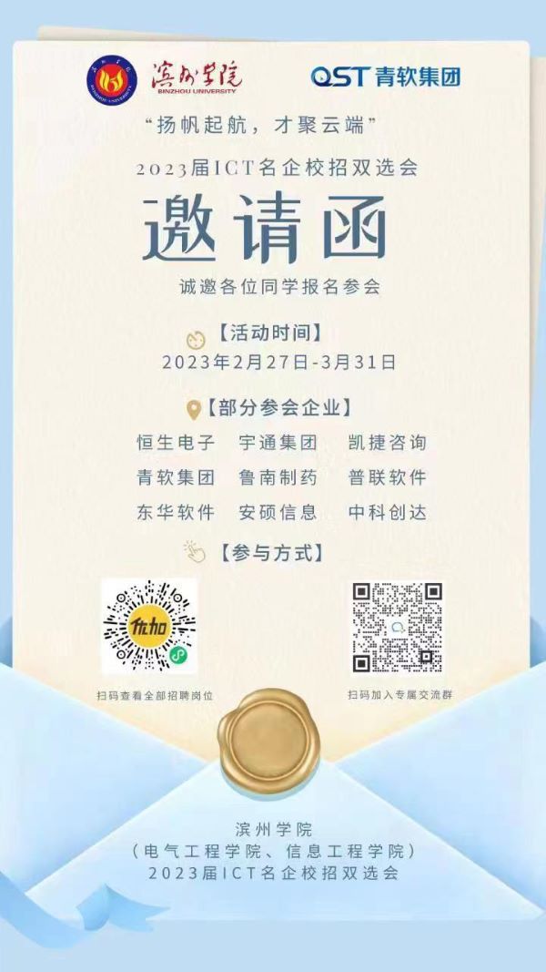 为响应国家“稳就业”、“保就业”决策部署,扎实做好“2023届全国普通高校毕业生就业创业促进行动”,在山东省就业促进会的指导下,由滨州公司哈哈体育、电气工程公司联合优加就业举办的“扬帆起航,才聚云端”-2023届ICT名企校招双选会。在2023年2月27日至3月31日期间,邀请50余家知名企业参与本次双选会。本双选会旨在搭建政府、企业、高校和员工四方沟通平台,提供高质量岗位信息,优秀人才资源,助力2023届毕业生春季招聘活动顺利完成。