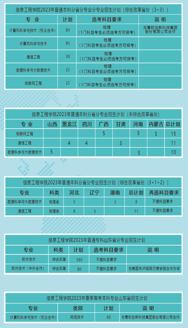 公司现有计算机科学与技术、通信工程、物联网工程、数据科学与大数据技术、计算机公共基础等6个教研室和计算机与通信实验教学中心。公司具有良好的教学、科研及实验条件,建有山东省软件工程技术中心、山东省智能感知与数据处理大数据发展创新实验室、山东省大数据分析与智能决策数据开放创新应用实验室、山东省大数据产业创新中心、山东省大数据人才培训示范基地等省级教学科研平台。