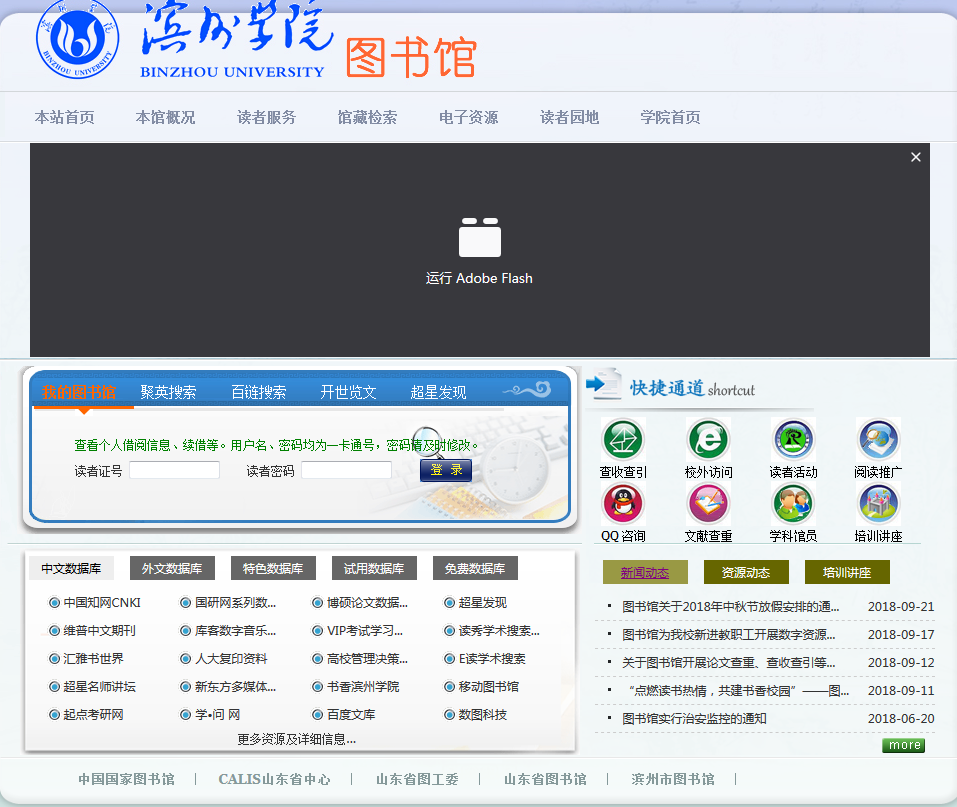 图书馆现有文献资源总量达到260余万册,其中纸质图书文献150余万册,电子图书100余万册,纸质期刊2200余种,近10万余册。重点收藏有《四库全书》、《续修四库全书》、《民国丛书》等,形成古近代经典文献系列,另外收藏线装古籍近5000册。建国以来国内主要报纸收藏完整。建有黄河三角洲文献室,收藏地方文献和孙子研究文献。近几年来,图书馆电子文献建设进展迅速,拥有《中国学术期刊》、《中国博、硕论文》、《超星数字图书馆》、《地方志数据库》、《读秀学术搜索》、《EBSCO外文期刊》等30多种中外文数据库,形成了内容丰富、载体多样的馆藏体系。