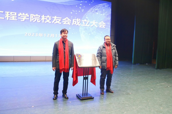 李建磊与1998级员工张景鹏为哈哈体育发展基金揭牌