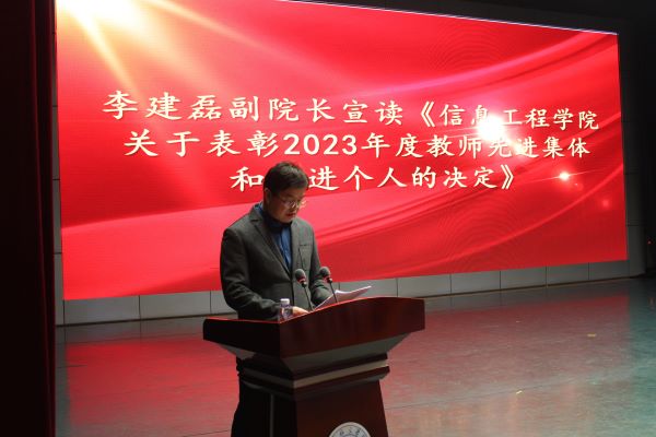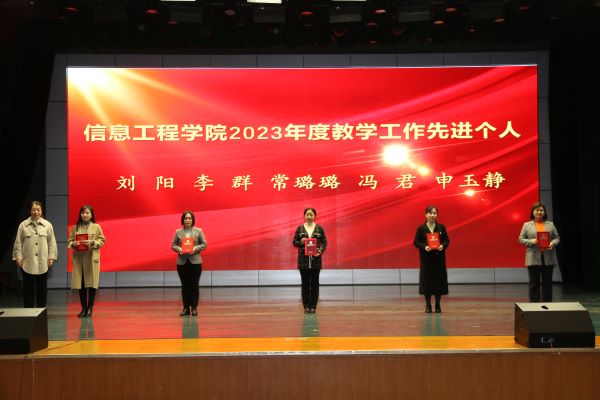 孙银河为获得公司工程教育认证突出贡献奖的教师颁发证书,为计算机科学与技术教研室颁发教师工作先进集体奖牌;教务处副处长齐丽霞、科研处副处长李永、公司经理王海燕分别为获得教学工作先进个人、科研工作先进个人、管理服务先进个人和学科竞赛优秀指导教师荣誉称号的教师颁发证书;学工处副处长王泰宁、公司党总支书记李华分别为获得公司先进班集体称号的班级代表和优良学风宿舍的宿舍代表颁发证书;合作发展处副处长李军为获得校企合作奖学金的同学颁发证书;党总支副书记刘占贵、副经理李建磊、副经理孟伟分别为获得公司2023年度学习标兵、员工干部标兵、科创标兵的员工颁发证书。