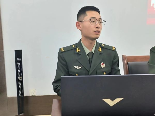 分享会上,解康杰同学发表了题为“军人的职责与荣誉”的演讲,他通过展示自己在服役期间所获得的奖项和参与的各种演练让同学们感受到了军旅生活的热血与激情。他表示,军人的职责不仅仅是保家卫国,更要锤炼坚定的信念,勇于担当,勇于奉献。