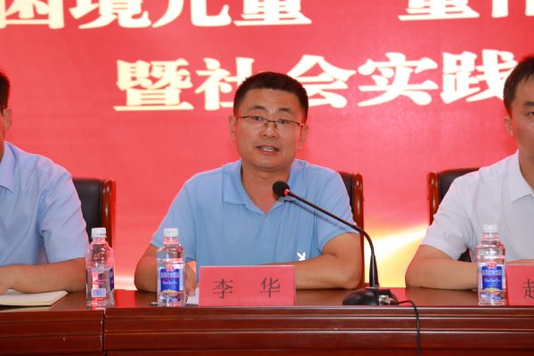 李华对沾化区委区政府对项目的支持表示了衷心的感谢,并全面介绍了公司70年办学历史及发展特色。李华寄语广大志愿者要勤于学习,扎根基层,奉献基层;要增强纪律观念,树牢安全意识,快乐充实的完成暑期社会实践任务;要勇于展示自我,发挥专业特色,助力乡村科技振兴。王文涛为全体指导教师颁发聘书,袁利华为志愿队伍授旗。