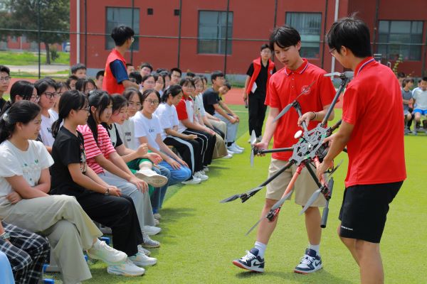 活动伊始,“渤海之翼”的志愿者们通过精心准备的PPT和生动有趣的视频,向孩子们深入浅出地介绍了无人机的发展历程、种类以及在各个领域的广泛应用。志愿者李梁利用通俗易懂、易于被孩子们掌握的语言将《山东省低空经济高质量发展三年行动方案(2024—2026年)》详细传达给孩子们,孩子们被深深吸引,纷纷踊跃提问,现场气氛热烈。在理论知识讲解之后,迎来了令人期待的实操环节。志愿者孙瑞腾将无人机小心翼翼地摆放好,手把手地指导孩子们如何操作遥控器。孩子们起初还有些紧张,但在孙瑞腾的耐心鼓励下,逐渐掌握了操作要领,成功让无人机平稳起飞、盘旋、降落。志愿者李建伟结合专业所学,详细介绍了无人机在农业生产、作物病虫害农药播撒、空中救援侦察中的广泛应用,鼓励孩子们努力学习科学知识,为科技振兴贡献力量。看着自己操控的无人机在空中自由翱翔,孩子们的脸上洋溢着自豪和喜悦的笑容。八年级员工姜嘉栋兴奋地说:“这是我第一次亲自操作无人机,感觉太神奇了!”