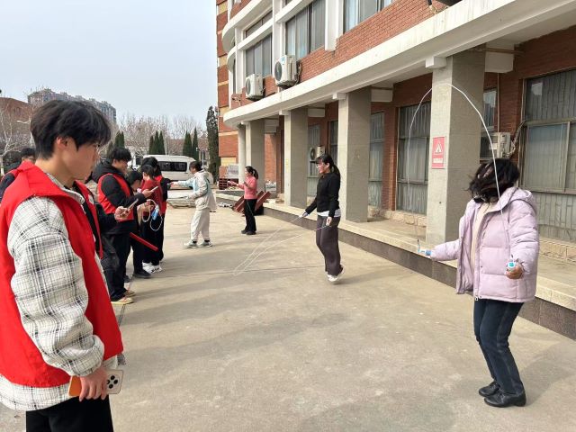 春日暖阳下,比赛现场热闹非凡。随着裁判哨声响起,教职工们迅速进入状态。有的老师身轻如燕,跳绳在空气中呼呼生风;有的老师则节奏稳健,展现出十足的耐力。现场师生热情高涨,加油声、欢呼声交织成一曲充满活力的乐章。比赛结束后,无论成绩如何,大家脸上都洋溢着满足的笑容。