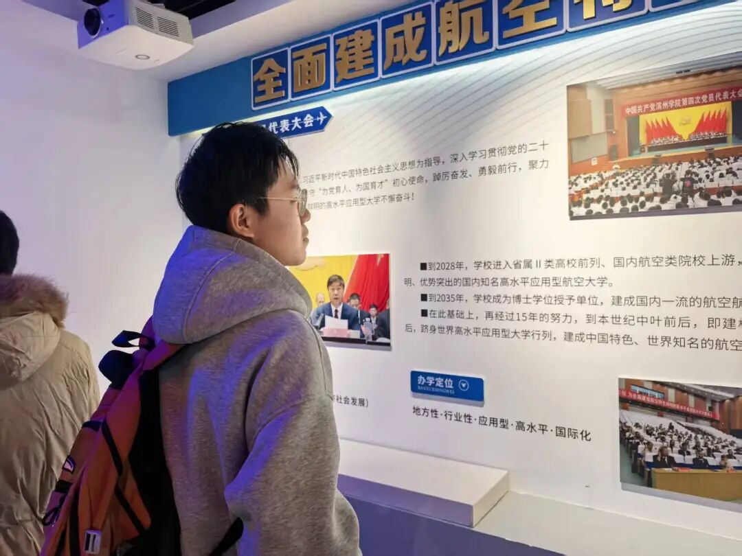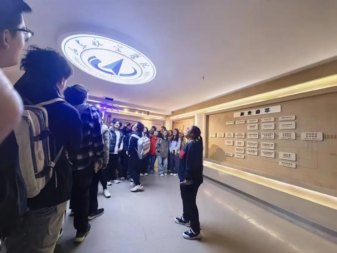 在老师们的引领下,同学们循着历史脉络认真观摩每一件展品,仔细聆听每一段故事,系统了解了公司在教学科研、团队建设、人才培养、航空特色发展等方面取得的重大成就,对公司的办学定位、发展理念与时代使命形成了更为深刻且立体的认识。